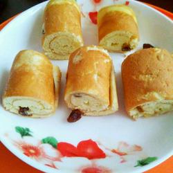 5. It is good to add condensed milk or cream salad dressing after it is baked.Roll it up, wrap it in plastic wrap, put it in the refrigerator, and cut it into sections the next day!