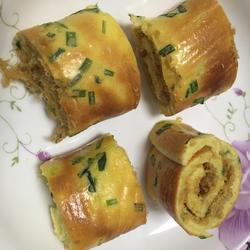 6. Preheat the oven, put oil paper on the baking sheet, and put the prepared Pour it onto oil paper, just one-third of the way there.Then bake at 175 degrees for 7 minutes, take out and spread green onion and egg yolk on the surface.