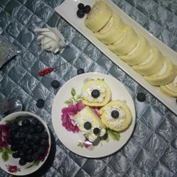 18. When the cake is cooling, you can whip the cream and add powdered sugar to the cream