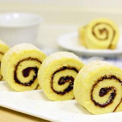19. Spread jam on the outside of the cake roll.