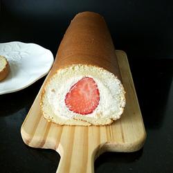 9.Cut off the two ends that are not pretty.The strawberry is just exposed, which is quite beautiful.The cake roll is ready like this.