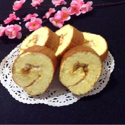9. Spread salad dressing and meat floss on the cake, and mark 2 cm from the roll One knife, don't cut to the end.
