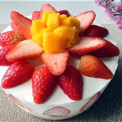 19.Take out the cake after 4 hours, Decorate with strawberries and mango,