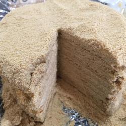 19. Filter the cake crumbs through a drying net and sprinkle them on the dough coated with condensed milk