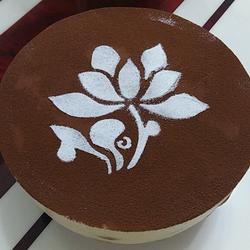 17. Then sprinkle moisture-proof sugar powder on the printing mold to make a pattern, and a delicious tiramisu is completed.