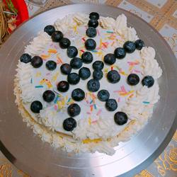 7. Decorate as desired, spread on cream, top with blueberries and sprinkle with sugar pins.It looks so appetizing