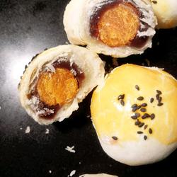 16. 20 grams each of bean paste, wrap the salted egg yolk into the bean paste