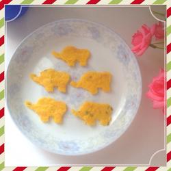 4. Heat oil in a dry pan, pour in egg paste and fry over low heat until cooked on both sides.Use the mold to make an elephant shape and serve on a plate.You can also eat it directly.