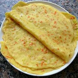2.Add coriander, carrots and eggs to the flour and add water to make noodles
