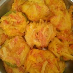 1.A little carrot, a little shredded ham, etc., chop the tomatoes, and beat into the egg seasoning paste.(You can add other ingredients as appropriate.)