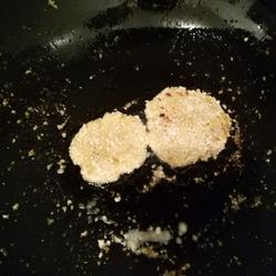 3. Mix well and make it into a round cake shape, pat it with bread crumbs (*^_^* The one I made is too thin and difficult to shape, so it is not so Don’t follow me if it’s beautiful)