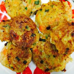 7.Add a small amount of flour and water and shape into small round cakes with your hands.Coat the outside of the cake with egg liquid and fry in a pan until golden on both sides