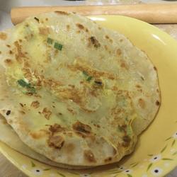 5.Put oil in the pan, fry until both sides are golden brown, poke holes in the bulging areas, and pour an appropriate amount of egg liquid