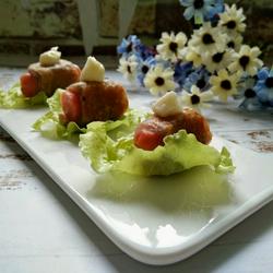 Ham sausage ( 2 sticks ) | Salad dressing ( a little ) |