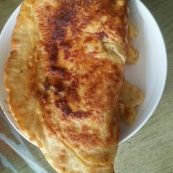 3.The electricity I use Heat the pancake stall and add oil, pour the batter into it and spread it with a spatula, heat it and cover it