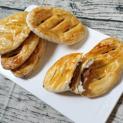 10. Roll out the skin again, don’t use too much force.Scrape three times and apply egg yolk liquid.At this time, preheat the oven to 180°C for 15 minutes.