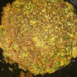 1. A handful of green peppers, two or three , chopped, beat four eggs together and stir.