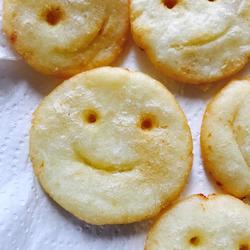 3.Put the oil in the pot to submerge the potato cakes.After the oil is hot, fry on low heat, remove from the pot and put Sprinkle a little salt (or tomato paste) on the absorbent paper.