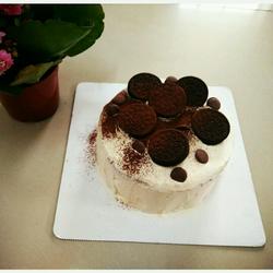 12. Arrange the Oreo cookies in the position you like, arrange the chocolate chips, then use a sieve to sift an appropriate amount of cocoa powder, and put it in the refrigerator Refrigerate to set.