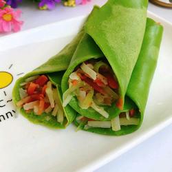 12.Pour an appropriate amount of batter to cover the entire bottom of the pan, turn on low heat and fry slowly until the surface begins to solidify, turn over