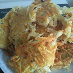 • 2.Grate the potatoes, add salt, chopped green onion and mix well, then add flour.Do not add too much flour.Use chopsticks to twist it until it is very loose.