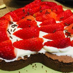 18. It’s baked, garnish with cream, strawberries, chocolate needles, and enjoy the delicious cake!