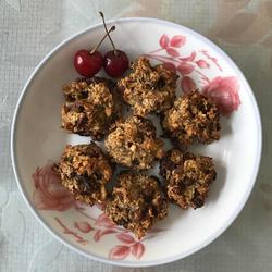 4. Pour in oats, raisins and walnuts and stir evenly.Preheat the oven to 180 degrees for 10 minutes.