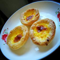 7. Place in the middle layer of the preheated oven, heat up and down, 210 degrees, 25 minutes Bake until focus appears on the surface of the egg tart