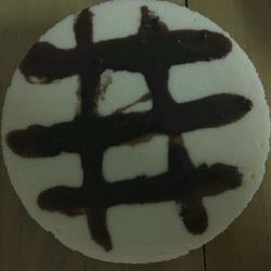 8.After melting the chocolate, squeeze it into lines on the surface of the cheese cake.