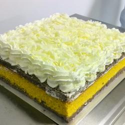 This cake is divided into four layers, with cocoa chiffon as the base and pumpkin as the second layer Covered with three layers of cheese and cocoa chiffon! Form a dark layer with creamy chocolate chips on top.