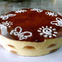 12.Put another layer of finger biscuits, pour in the final mousse paste, and shake gently to level.Refrigerate for 4.5 hours.