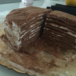 12. Put plastic wrap on the cake mat, divide the plastic wrap into two pieces and cross them into a cross, leaving Make it longer (because it is used for wrapping cakes), take a piece of pie crust and spread it evenly with butter (not too thick), sift a layer of pie crust crumbs on top, and prepare it in the same way