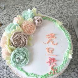 3. Pour the egg whites into the egg yolks in three batches, mix well, pour into an eight-inch cake mold and bake at 150 degrees for 55-60 minutes, remove and invert for 3 hours to unmold and decorate.
