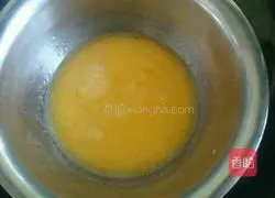 2. Beat egg whites and egg yolks in two water-free and oil-free basins respectively.Pour 3 egg yolks, milk and butter mixture, and cream cheese into a food processor and beat for 5 or 10 seconds.