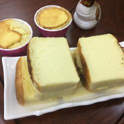 7. Brush the mold with a layer of butter and pour in the stirred cheese paste.Place in the oven at 150 degrees for 20 minutes and then 130 degrees for 40 minutes.