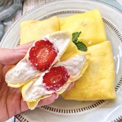 The egg pancake crust must be kept on low heat! The cream must be refrigerated before whipping! The pancake will taste better after being refrigerated.Good!