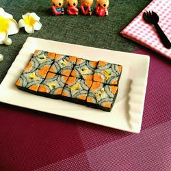 5. Glue the remaining two pieces of seaweed together.Otherwise, remove the ones that are not long enough.Place two pieces back to back,