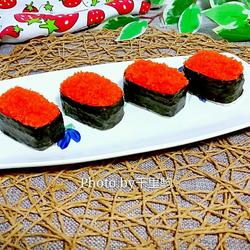 6.Put 10 grams of fish roe and the fish roe sushi is completed