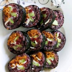 How to make meat floss and blood glutinous rice sushi