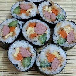 Wearing gloves to spread rice is easy, not sticky, and It’s convenient and fast.When rolling sushi, press firmly but not too hard for fear of breaking the seaweed