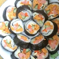 Note that the rice must be soft, otherwise the taste will not be good.Don’t put too much rice or vegetables, otherwise it won’t be able to be rolled up