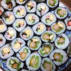 Let the rice cool.Otherwise, the seaweed will become soft, not crispy, and affect the taste