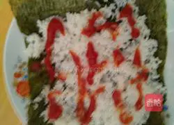 10. Cut the corn sausage into cubes and put it on the seaweed.