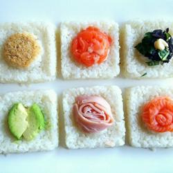 3.Ham slices and salmon slices should be arranged in a flowery shape