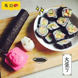 Prepare bamboo curtain seaweed egg cucumber ham sausage salmon seaweed rice mix