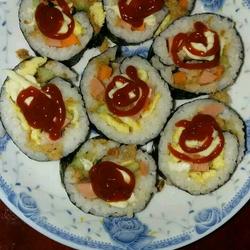 7. Squeeze on ketchup and salad dressing and it is ready to eat.You can change it to soy sauce and mustard according to your personal taste