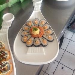 3. Change the water-drop sushi with a knife and place it on In the middle of the plate