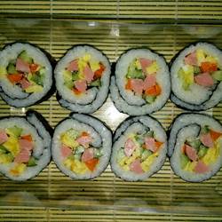 Note that when rolling the seaweed, try to roll it as tightly as possible so that it can remain intact when cutting.The above amount can make 5 rolls.