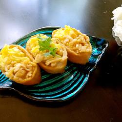 7.Finally, put the chicken shreds and broken eggs on the pocket.