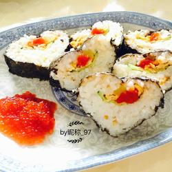 3.Add cucumber, meat floss, eggs, salad dressing, Tomato sauce, caviar, yellow radish strips (you can add anything else if you want)